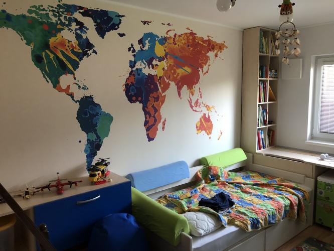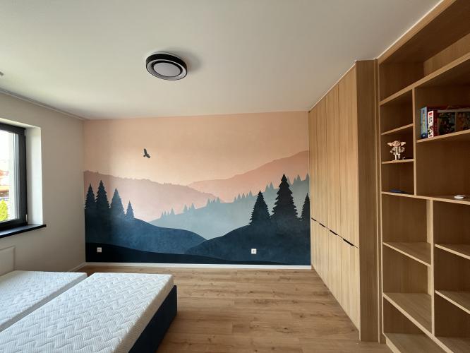 Pre CVČ Trebišov sme realizovali nalepenie kvalitných vliesových tapiet vyrobených presne na mieru podľa návrhu našej interierovej dizajnerky.